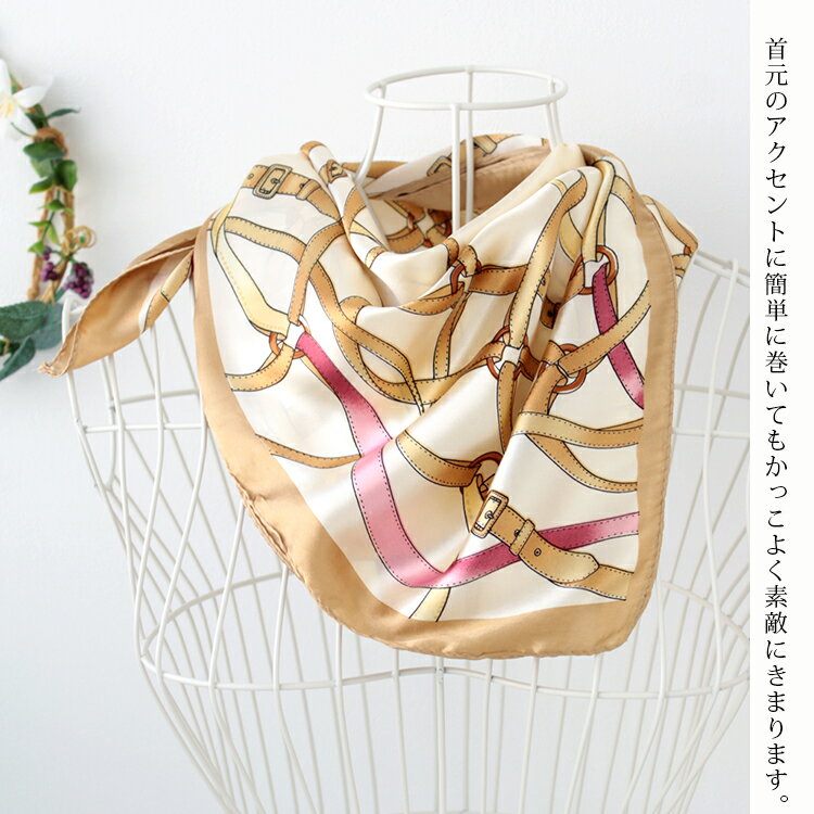 ↓↓色違いは希望のカラーをクリック↓↓ 定番のベージュ系色の中に優しいピンクの差し色のデザインがとても素敵なベルト柄スカーフです。