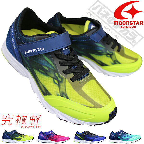 ムーンスター スーパースター スニーカー SS J1052 キッズ ジュニア ライム・ピンク・ブルー・ミント 19〜24.5cm シューズ 子供靴 運動靴 マジックテープ ベルクロ バネのチカラ(バネの力) 究極軽 アルティメイターライト MoonStar SUPERSTAR