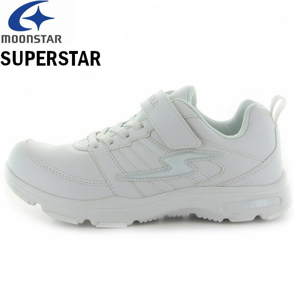 バネのチカラ スーパースターJ754ホワイト2E マジック 子供靴 通学履き オール白 定番 取り外して洗えるインソール 雨天に強い合成皮革モデル パワーバネ オールホワイト ジュニアスニーカー ガールズスニーカー ムーンスター