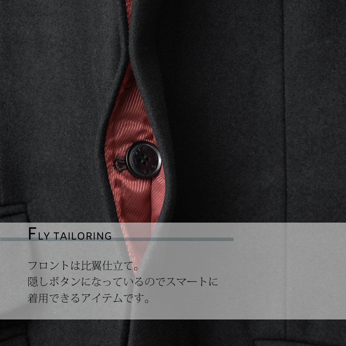 フロントは比翼仕立て。