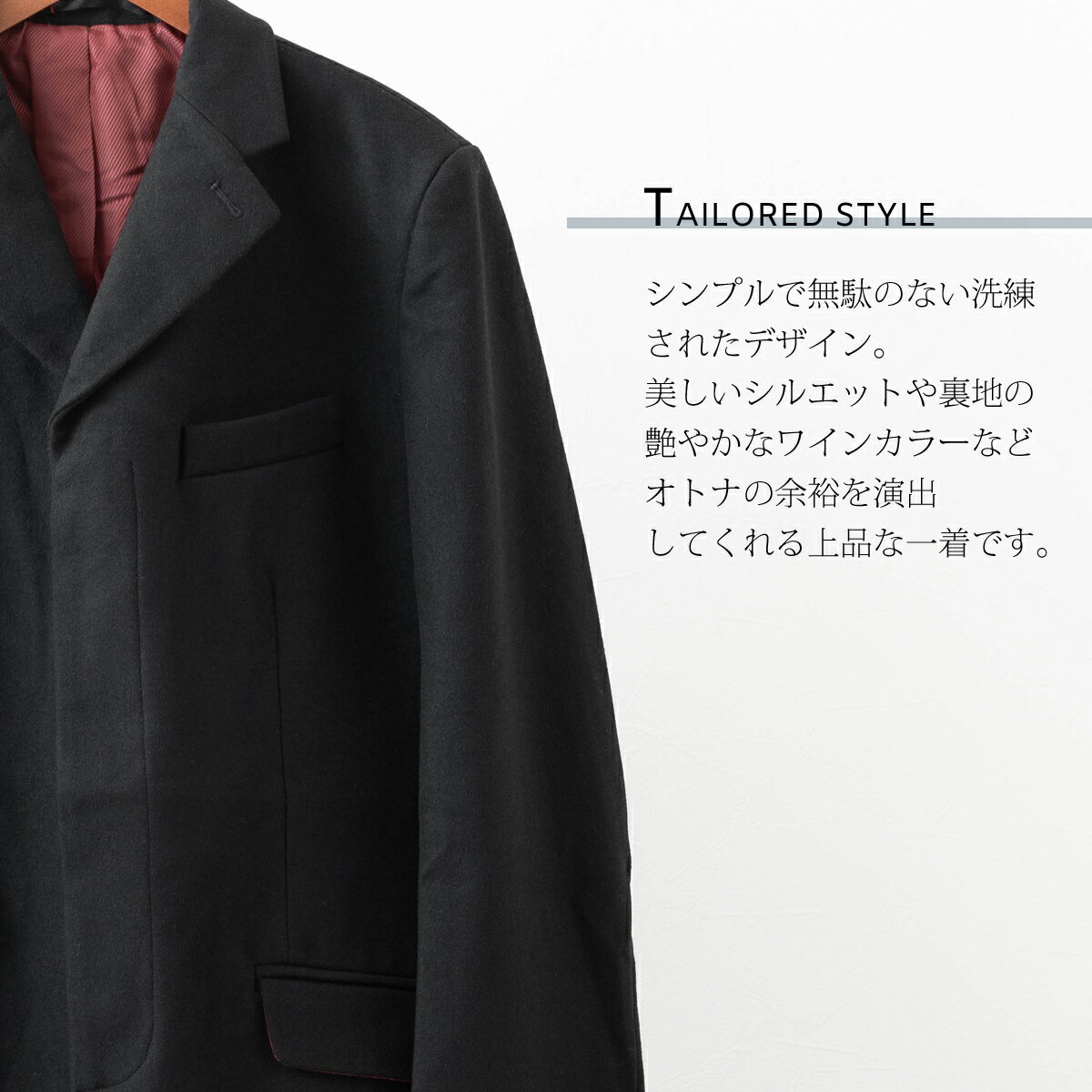 美しいシルエットや裏地の艶やかなワインカラーなど オトナの余裕を演出してくれる上品な一着です。