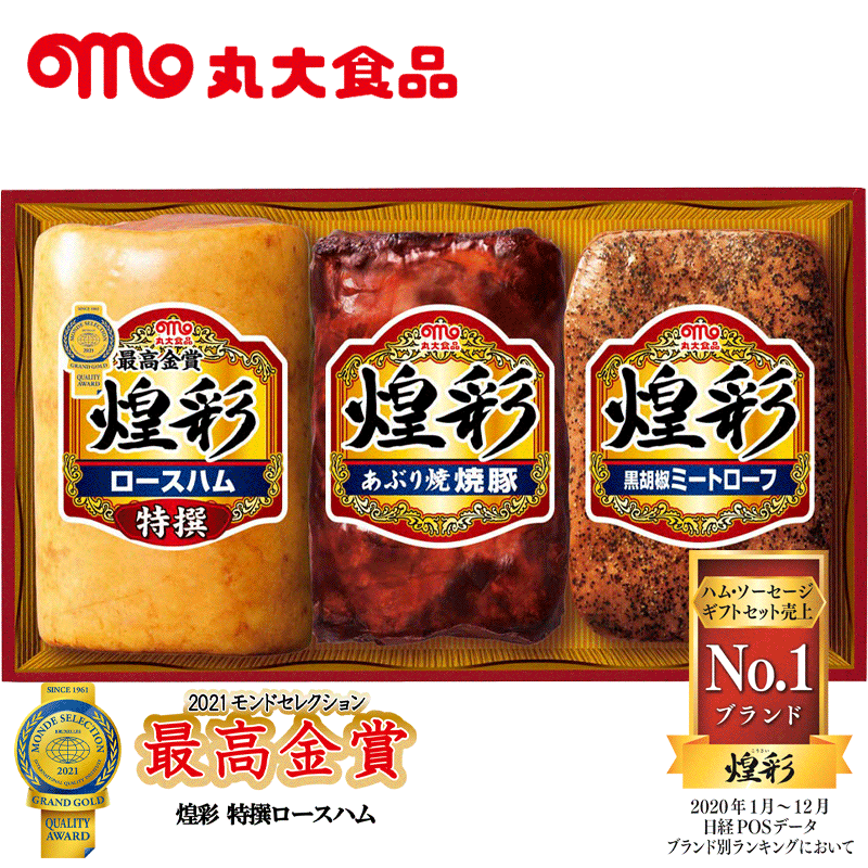 商品説明 名称 丸大食品 煌彩ハムギフト 商品内容 特撰ロースハム350g、黒胡椒ミートローフ170g、あぶり焼焼豚180g アレルゲン 卵・乳・小麦・大豆・豚肉 賞味期限 別途商品ラベルに記載 保存方法 冷蔵で保存してください。