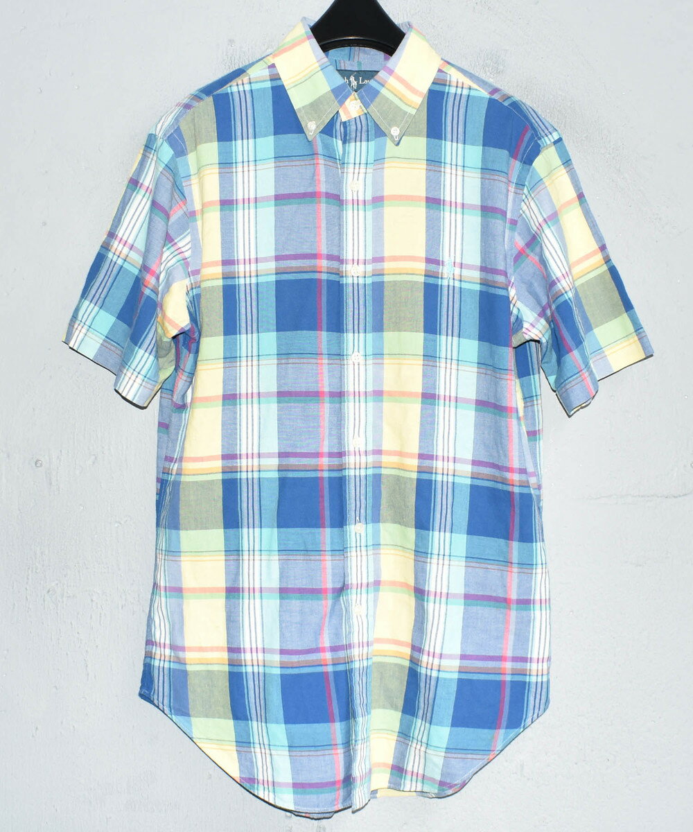 【中古】 Ralph Lauren チェック柄 ハーフスリーブ ボタンダウンシャツ 海外直輸入USED品 ラルフローレン ポロ ベルベルジン BERBERJIN ポロスポーツ チャップス ラルフ アメリカ古着 ヴィンテージ ビンテージ Ralph Lauren、ハーフスリーブボタンダウンシャツ。