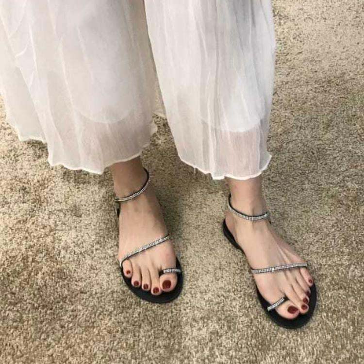 足を美しく見せてくれる華奢ストラップフラットサンダル。