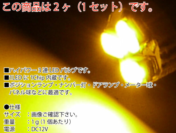 LEDバルブT5アンバー2個 3SMDメーター球T5 LEDバルブ 明るいT5 LEDメーター球 バルブ 爆光T5 LEDバルブ ウェッジ球 as10209-2