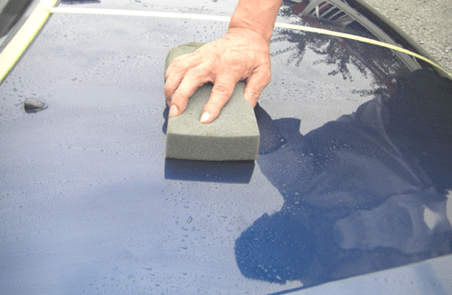 これと全く同じ素材のスポンジでキラクリーンZ(コーティング剤)を塗り込むことでコーティングのムラがきわめて少なくなり、その効果も向上します。