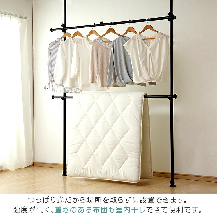 \レビュー記載でおまけプレゼント♪/物干し 突っ張り 室内物干し 布団干し 2段 洗濯物 天井つっぱり式 ハンガーラック HR-T1727ハンガー ラック 突っ張り式 コートハンガー 洋服掛け コート掛け 衣類収納 スチール 省スペース ホワイト(WH) ブラック(BK)【D】