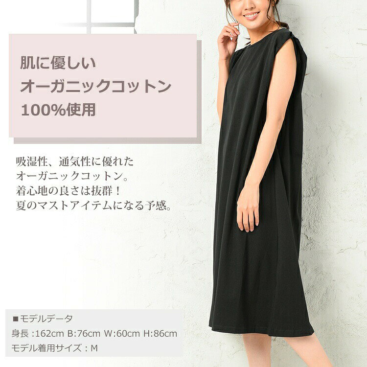 【メール便送料無料】メール便対応 大きいサイズ レディース Iラインワンピース ショルダータック ノースリーブ ロング丈 オーガニックコットン cotton100 M/LL/3L/4L/5L ゆったりサイズ ぽっちゃり女子 プラスサイズ