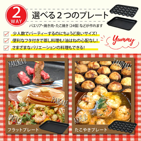 フラットプレートとたこやきプレートの 2種類のプレートで、料理の幅も広がります。